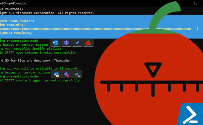 If you want to succeed with Pomodoro, you need to make yourself unavailable. Equally important, you need to make yourself available again when those 25 minutes have passed. That is why we created the Pomodoro PowerShell tool, and why I love the simplicity of this approach.